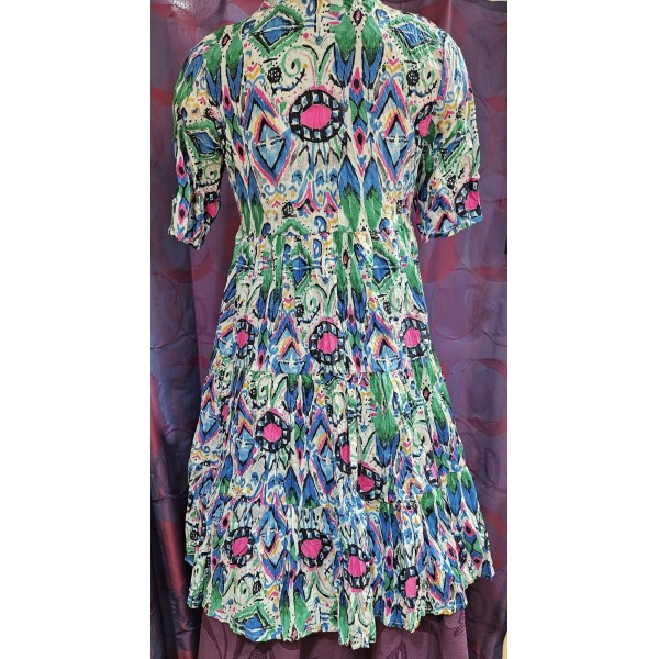 DisponibleDes coupes libres, du coton bio sans compromis, des imprimés qui claquent, nos robes bohèmes chic, fluides, colorées, c'est du look estival qui respire l'audace. Robes amples pour les femmes modernes, qui aiment l'ovesize et le confort, c'est ici, pour cette robe à l'imprimé frais, boutonnée, manches 3/4, mi longue, avec des poches dans la couture.